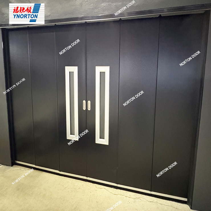Ang side-sliding garage door na binuo ni Norton ay nagpatibay ng isang pag-ilid ng pagbubukas ng pagbubukas at pagsasara ng mekanismo. Ang pinaka-kilalang tampok nito ay ang kahusayan sa espasyo, na ginagawang angkop para sa mga garahe na may limitadong taas ng kisame o labis na malawak na sukat. Ang mga track ay naka -install na flush laban sa mga dingding sa gilid, tinanggal ang pangangailangan para sa overhead clearance. Ang nag-iisang pintuan ay maaaring makamit ang isang maximum na lapad ng 6 metro, habang ang isang dobleng pintuan, pagsasaayos ng bi-parting ay maaaring umaabot hanggang sa 12 metro, na akomodasyon sa mga pangangailangan sa paradahan ng multi-sasakyan.